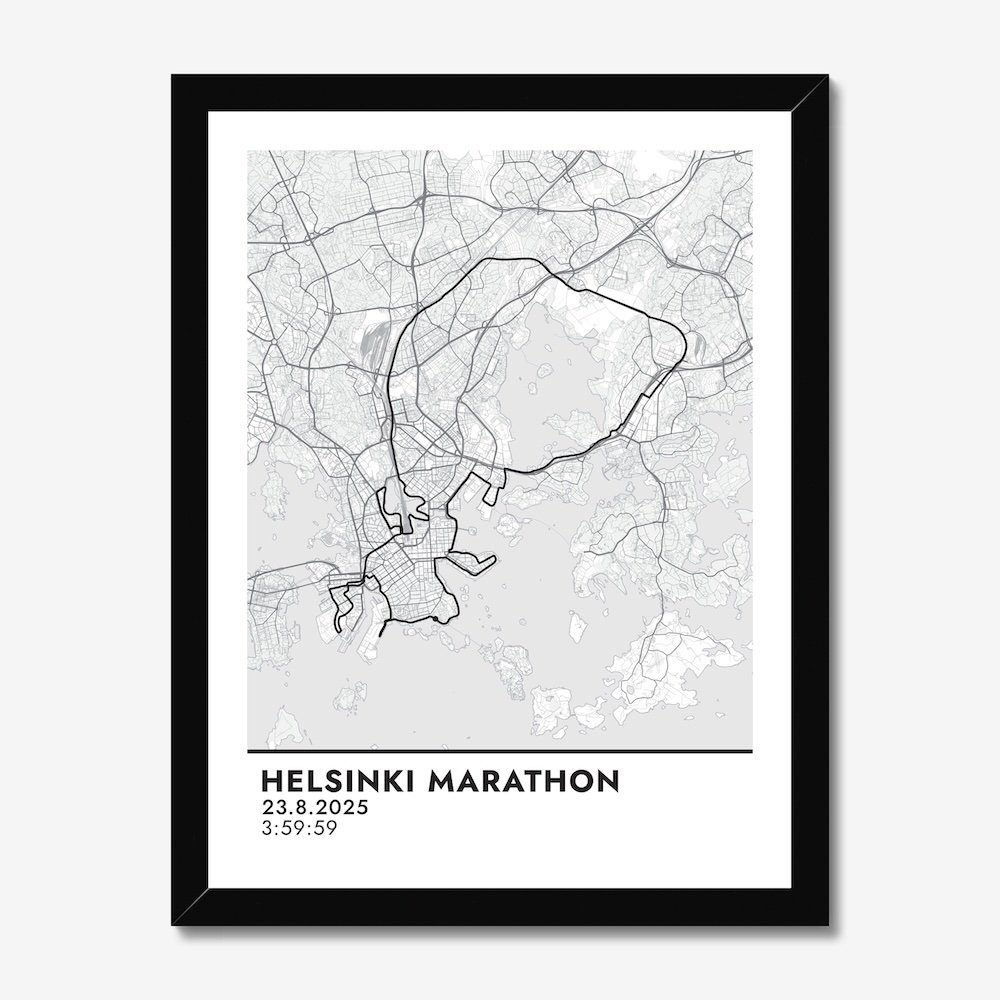 Juoksit läpi Helsingin katujen – nyt tuo saavutus ansaitsee tulla ikuistetuksi. Tämä yksilöllinen juliste tallentaa juoksemasi reitin, ajan ja päivän, jolloin ylitit itsesi. Tulostettu korkealaatuiselle mattapaperille, joka tuntuu miellyttävältä ja sopii kauniisti sisustukseen.